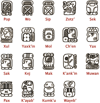 are identified by numbers, but the cycle of 20 has days with names. And the following are the signs of the tzolk'in ritual cycle.