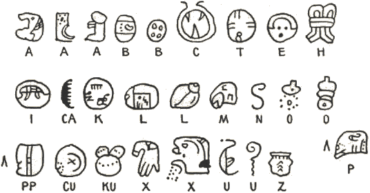 hieroglyphics. Apparently, he assumed that Mayas wrote with an alphabet, and