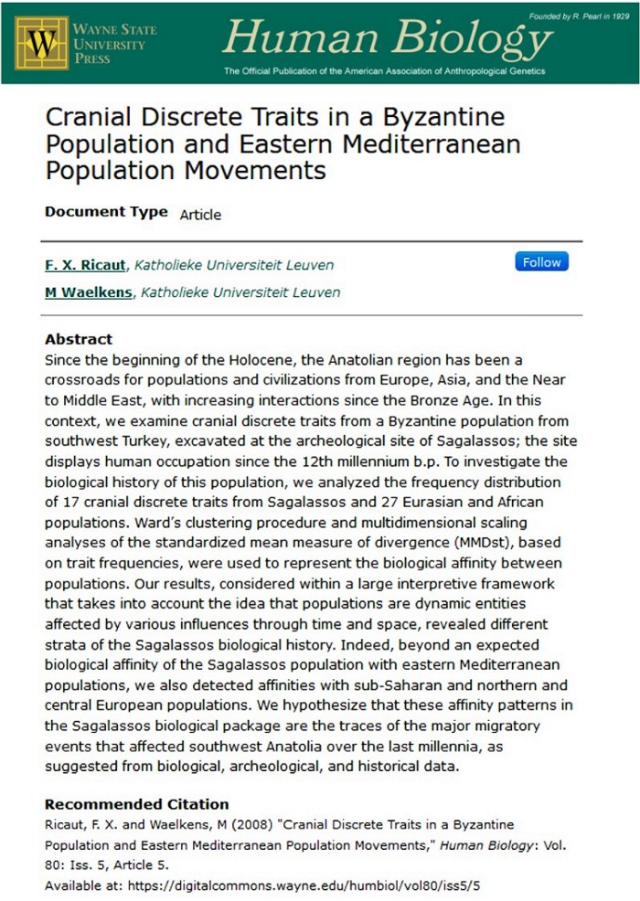 As is obvious, the purpose of this site is to counter the absurd assertions (just plain lies really), of Whites that they (Whites = Central Asian Albinos) played any part in the creation of Mans original Civilizations; much less, were the actual founders of those civilizations. Throughout this site we used original Artifacts and ancient documents, as well as scientific studies of skeletons, to refute Albino falsehoods and their freshly made Fake artifacts. For Anatolia (now called Turkey) we begin with establishing the race of the original people: Africans - original man, and the race of the LAST real civilization of the area - the Black Byzantine (also called the Eastern Roman Empire). As a corollary, this starting study also proves that the "Western Roman Empire" was also Black. Not to mention the Ancient Egyptians and "Middle Easterners". Which are probably the most absurd and delusional Albino claims of all: (That Egyptians and Levantine's were White).These objectives are attained with the following study: "Cranial Discrete Traits in a Byzantine Population and Eastern Mediterranean Population Movements," Ricaut, F. X. and Waelkens, M (2008). Human Biology: Vol. 80: Iss. 5, Article 5.