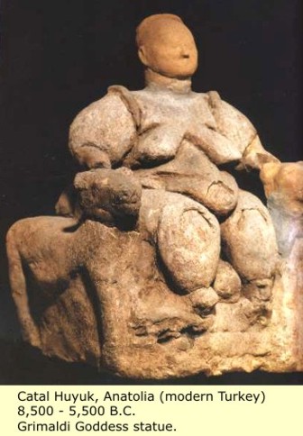 One of the most significant aspects of Çatal Huyük houses is the practice of burial under the floor of living spaces, usually with elaborate grave goods and sometimes, organic materials. At times, the burials are so intense that in one building, a total of 67 individuals were buried under one room, in a space of less than 30 square meters. Many fertility goddess figurines were also found, made of clay, and very fragile, (fired at low temperature), representing an obese female with exaggerated sexual organs: some depicted in the state of giving birth and accompanied by lions.