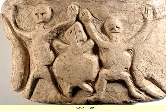 Also found at Nevali Cori, (pictures have not been released), were several hundred small clay figurines (about 2 in. high), most of them depicting humans, these have been interpreted as votive offerings. These figures were fired at temperatures between 500-600° C, which suggests the development of ceramic technology before the advent of pottery proper.