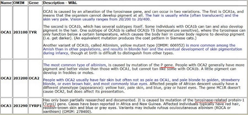 Update:Apologies for not explaining how eye color can be determined by DNA. Of course Genetics and a whole host of other things are explained in the Special Subjects Pages, but then again we don't want to overtax our readers. Under the heading of "Why reinvent the wheel" The U.S. Department of Health & Human Services - U.S. National Library of Medicine: has a reasonably race neutral (for Albinos) page on the subject - they still "IMPLY" lies. https://ghr.nlm.nih.gov/primer/traits/eyecolor
