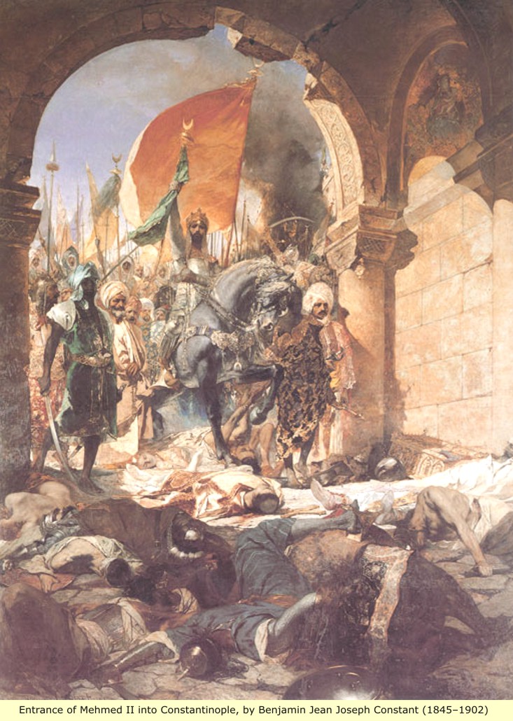 The last Byzantine Emperor, Constantine XI Palaiologos - A Mulatto - was last seen casting off his imperial regalia and throwing himself into hand-to-hand combat after the walls of the city were breached. Soon the Turkish Ottoman Empire would raise; below is a short history of the Turks.