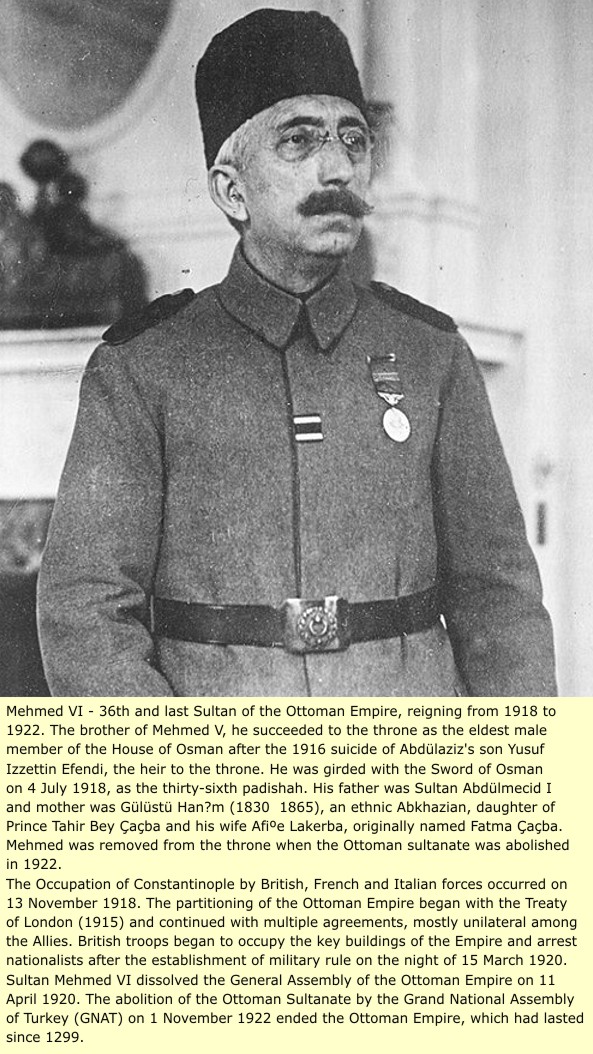 The occupation of Constantinople (Istanbul) along with the occupation of Smyrna (Izmir) mobilized the Turkish national movement which ultimately won the Turkish War of Independence. The formal abolition of the Ottoman Sultanate was performed by Grand National Assembly of Turkey on 1 November 1922. The sultanate was abolished on 1 November 1922 and the Republic of Turkey was established on 29 October 1923. The Sultan was declared persona non-grata from the lands that the Ottoman Dynasty ruled since 1299.