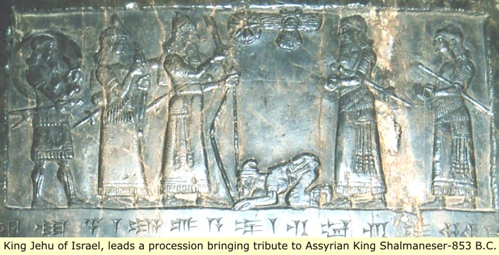 Beyond his bloody coup d'etat, little is known of the events of Jehu's reign. He was hard pressed by the predations of Hazael, king of the Arameans, who is said to have defeated his army "throughout all of the territories of Israel" beyond the Jordan river, in the lands of Gilead, Gad, Reuben, and Manasseh. This perhaps would explain why Jehu is offering tribute to Shalmaneser III on his Black Obelisk (where his name appears as mIa-ú-a mar mHu-um-ri-i or "Jehu son of Omri"); It is though that Jehu was encouraging an enemy of the Arameans into being his friend. In the Assyrian documents he is simply referred to as "Jehu son of Omri," that is, Jehu of the House of Omri, an Assyrian name for the Kingdom of Israel.