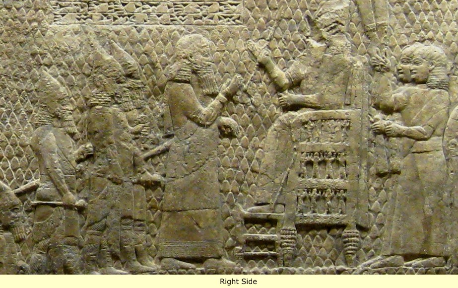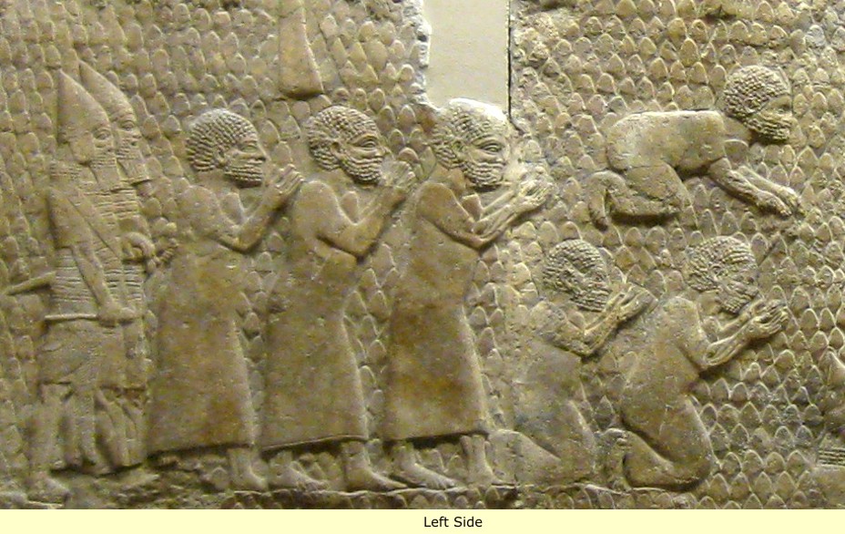 Close-up of a large wall relief depicting Assyrian King Sennacherib’s Attack and conquest of the Judean City of Lachish - 701 B.C. British museum, London - All.