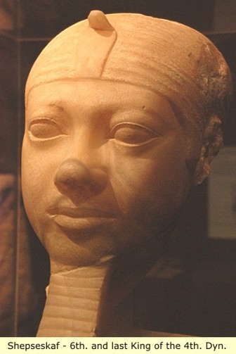 We will end the 4th dynasty by mentioning that The last and smallest of the Great Pyramids at Giza was built by pharaoh Menkaure, 5th king of the fourth dynasty.