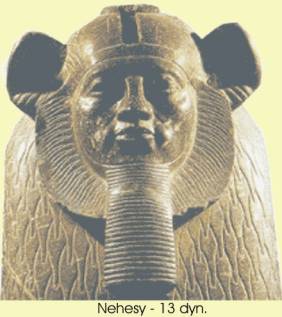 NehesyNehesy left documents where he states that he is the son of a pharaoh, but curiously he doesn't say who his father was, which possibly indicates that his statement isn't true. One theory advocates that his father might have been an Egyptian civil servant or a military commander who usurped royal rule in the delta. His throne name of Aa-seh-Re means: "Great in Council is Re". In the Turin Canon he is listed as the first pharaoh of the dynasty, but a great gap in the papyrus indicates a row of about five kings who probably ruled before him. Estimations have been made indicating that these had a rather long reigns compared with most of later kings, which makes the time when Nehesy was in charge to have occurred around the year 1705 B.C. The damaged Turin papyrus can't give him more than half a year in office. His name Nehesy meant "Nubian" in the Egyptian language and may indicate his origin and background, since soldiers from the south by tradition were a great part of the Egyptian military forces.