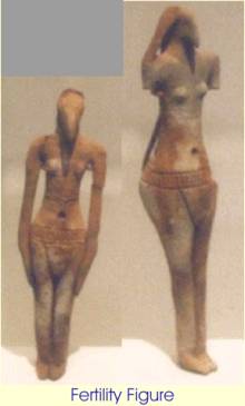 As the artistic abilities of the people grew, they started making pottery decorated with animals and humans engaged in hunting or worshiping. Female idol figures continue to appear - but now in greater numbers and in a wider variety. And now bearded male figures, also started to appear on pendants and ivory sticks, these seem to have a magical or spiritual purpose.