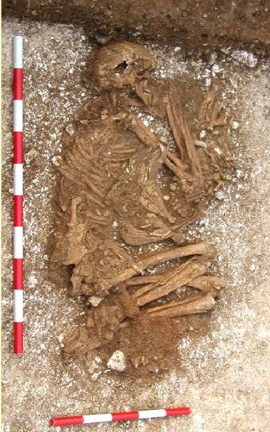 They may also bear witness to an ancient massacre: they were interred along with nine others in four graves, and many of the bodies show signs of a violent end. One female had a stone projectile head embedded in a vertebra, another had a fractured skull, and others had cut-marks on their hands and forearms consistent with self-defence. Most of the dead were children or women, and only one of the bodies belonged to a man in his prime. It is likely that these people were murdered in a raid by a rival tribe, before the survivors returned to bury their dead. A second grave may also hold a less conventional family unit: it contains the bodies of an infant girl, two brothers aged 4 to 5 and 7 to 9, and a woman aged between 30 and 38.