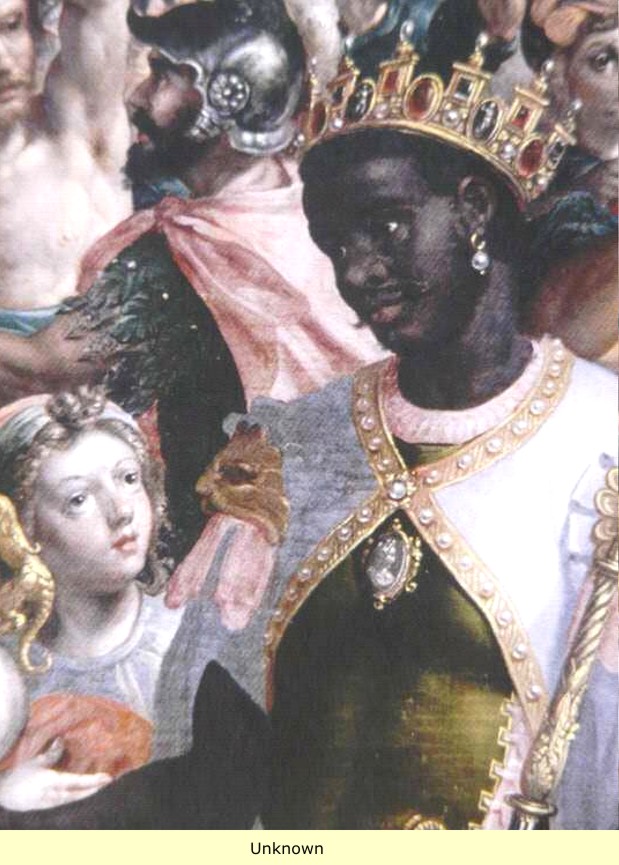 Today's descendants of the Germanic, Slav, and Turk Albinos from Central Asia, have so confused and obfuscated history with their false accounts and fake artifacts, that it is impossible at this time, to say definitively what the hierarchy of ancient western Rome was like, (from artifacts, we know that the Eastern Empire was ruled by Blacks). What little that we do have of artifactual evidence, suggests that like the Eastern Empire, the Western Empire was also ruled by Blacks. This painting of unknown provenance and period, may well be fanciful, but we feel that it accurately depicts the hierarchy of the Western Roman Empire.