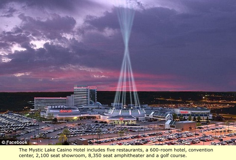 Many choose to take up expensive hobbies. They are big game hunters and breeders of thoroughbred horses. All of the children attend private schools. It's a remarkable turnaround for a group once hunted down by US Army soldiers - before finding refuge in Minnesota. The source of the almost unbelievable wealth is a pair of luxury casinos and resorts the tribe has built on its land - drawing tens of thousands of gamblers from the Minneapolis-St Paul region, and across the state. The Mystic Lake Casino Hotel is build on a man-made lake. It includes five restaurants, a 600-room hotel, convention center, 2,100 seat showroom, 8,350 seat outdoor amphitheater and a top-notch golf course. The theater venue competes for major touring acts with venues in Minneapolis and St Paul. The Mystic Lake Casino is the fourth-largest Indian casino in the nation. Combined with the tribe's Little Six Casino, revenues reportedly make up the lion's share of Minnesota's $1.4billion gambling profits, according to the Times. The tribe has used the money to generous donations to other Indian tribes - lending money and giving grants. It's always used the money to gain clout in the community.The Shakopee people have donated more than $243 million since 1996 and lent out nearly $500 million.