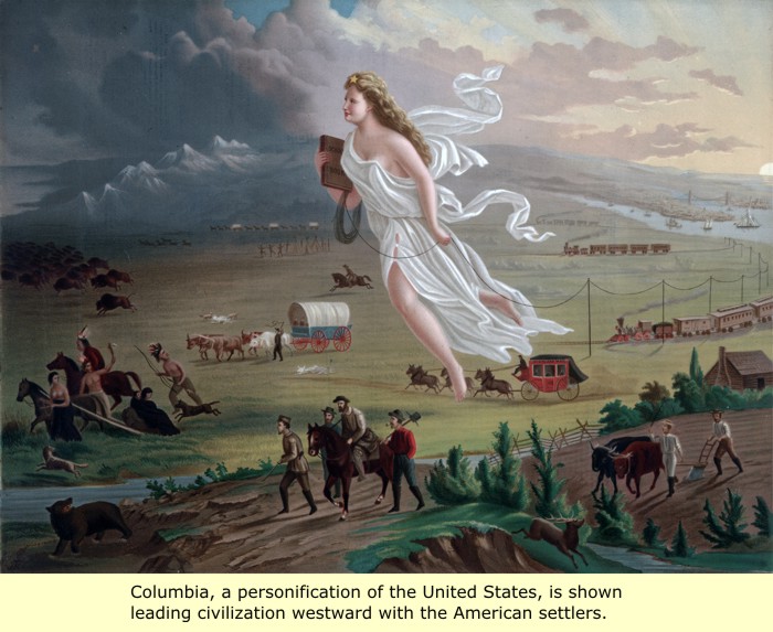 Manifest destiny - Wiki:In the 19th century, manifest destiny was a widely held belief in the United States that its settlers were destined to expand across North America. There are three basic themes to manifest destiny: The special virtues of the American people and their institutions Historian Frederick Merk says this concept was born out of "a sense of mission to redeem the Old World by high example ... generated by the potentialities of a new earth for building a new heaven" Historians have emphasized that "manifest destiny" was a contested concept—pre-civil war Democrats endorsed the idea but many prominent Americans (such as Abraham Lincoln, Ulysses S. Grant, and most Whigs) rejected it. Historian Daniel Walker Howe writes, "American imperialism did not represent an American consensus; it provoked bitter dissent within the national polity ... Whigs saw America's moral mission as one of democratic example rather than one of conquest." Newspaper editor John O'Sullivan is generally credited with coining the term manifest destiny in 1845.