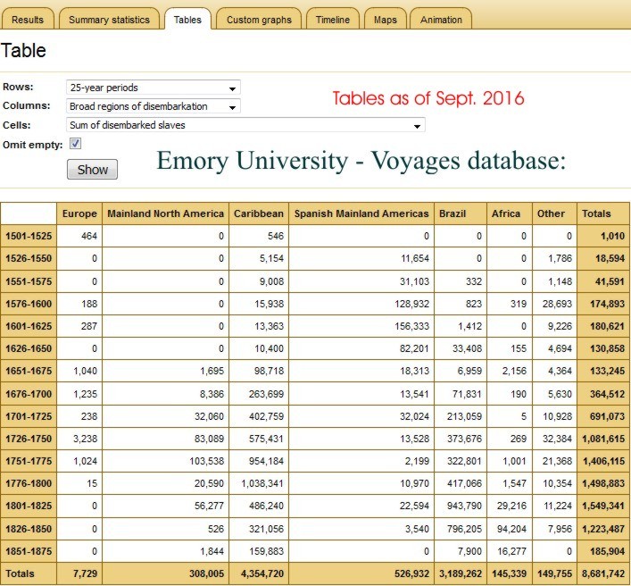 The Emory University Voyages database is a World-Wide collaboration of Universities and Scientists researching the Slave Trade.