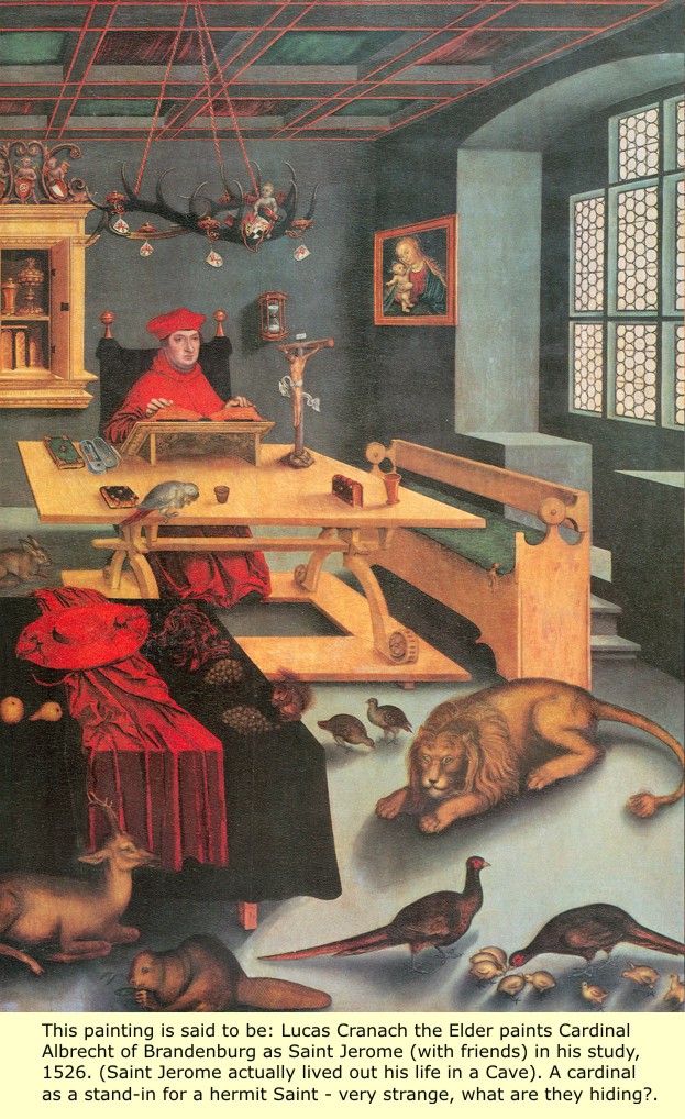 Such is the case with the "OTHER" story of Cardinal Albert of Brandenburg being the stand-in for another portrait of another Saint. In this case it is Saint Jerome.