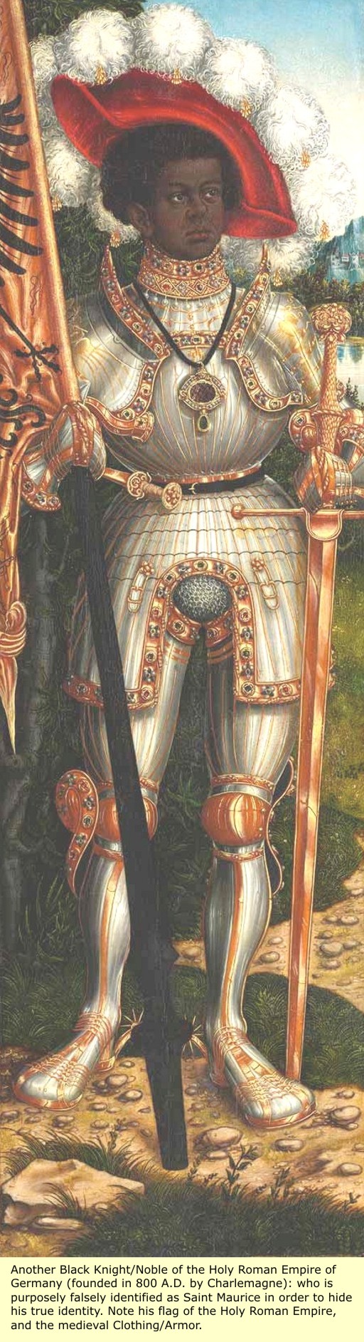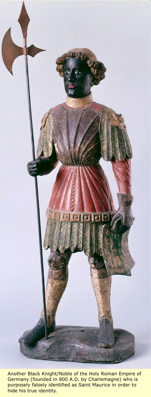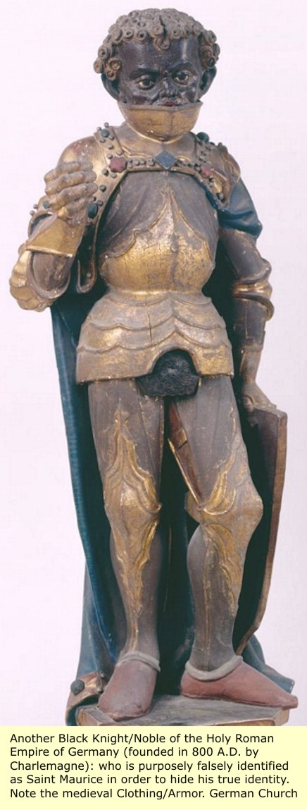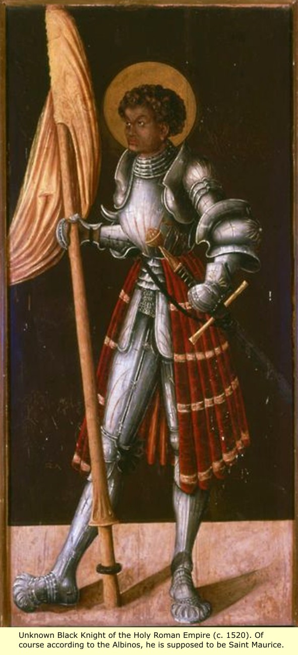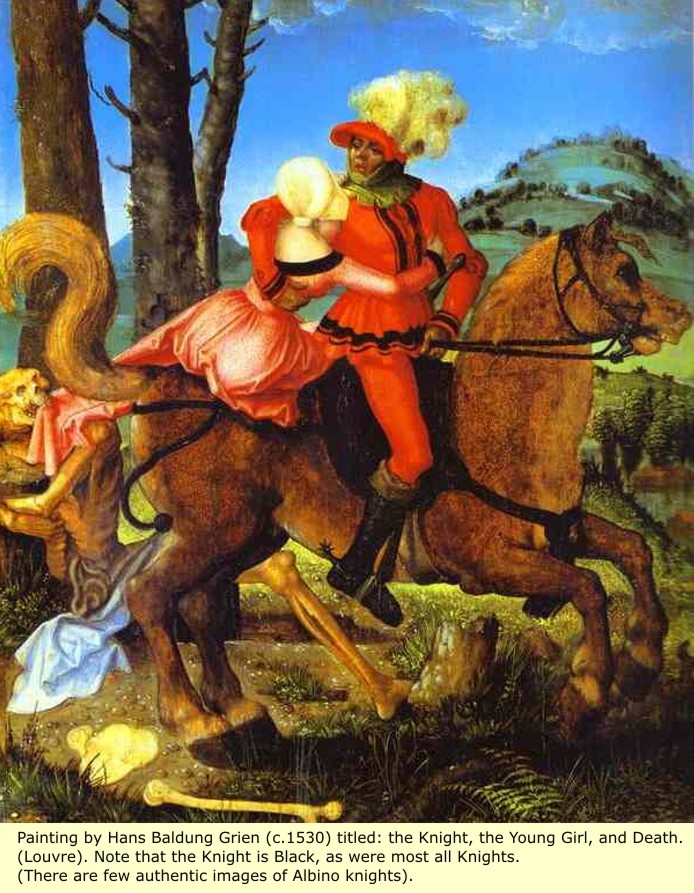 But not surprisingly, there is great evidence that medieval Blacks did not allow Albinos to be Knights. This assertion is supported by the fact that there are no authentic images - or very few if any, authentic images - of WHITE KNIGHTS. Even in cases like below, which appears to show a White Duke of Lancaster. But the fact is, that owing to the destruction of 97% of Britain's artifacts by Thomas Cromwell, the British library has thousands of FAKE, aged looking illuminated Manuscripts. There is no way for us to tell which are real, if any, and which are fake. (The fact that the race of the depicted knights is so ambiguous strongly suggests that the manuscript is a fake). Click here for the full knights of the garter >>>