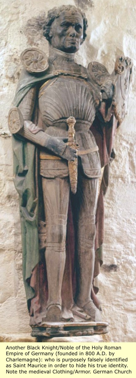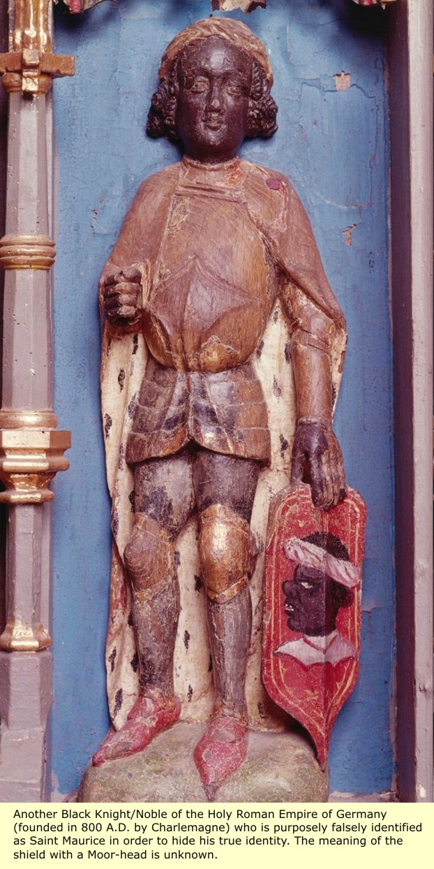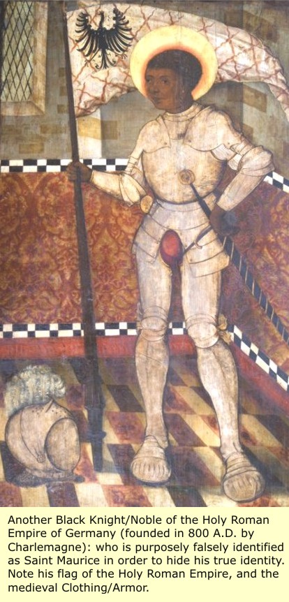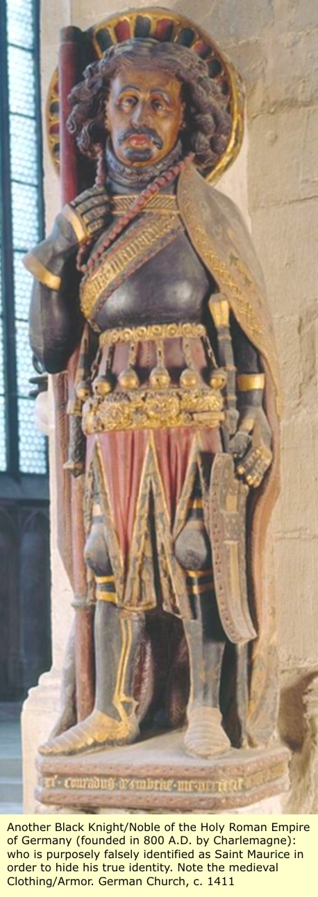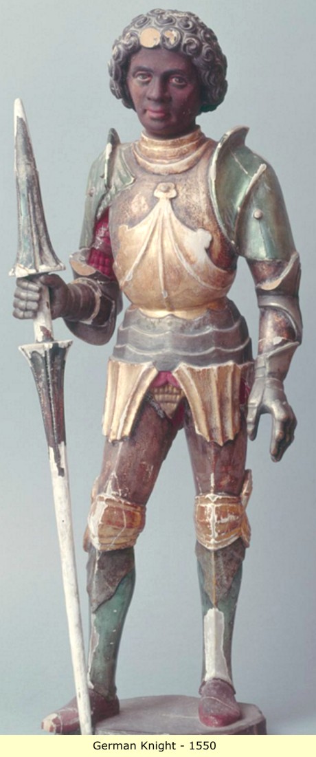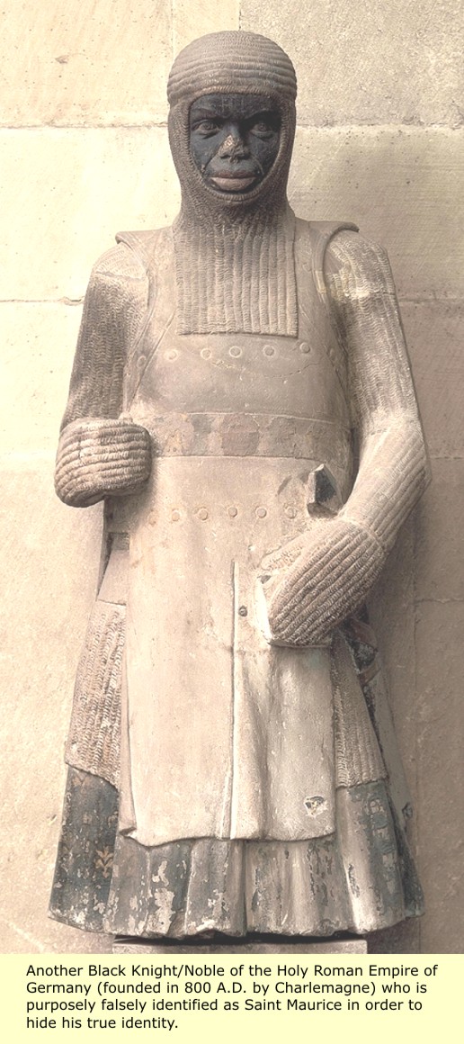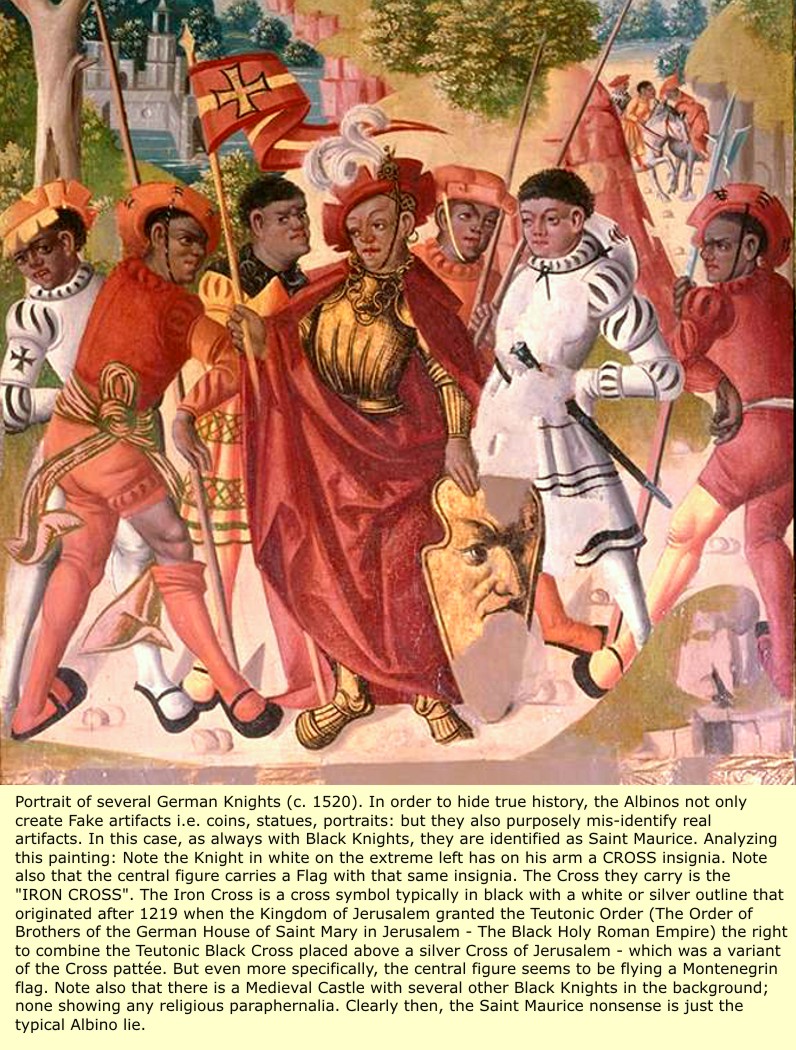 But not surprisingly, there is great evidence that medieval Blacks did not allow Albinos to be Knights. This assertion is supported by the fact that there are no authentic images - or very few if any, authentic images - of WHITE KNIGHTS. Even in cases like below, which appears to show a White Duke of Lancaster. But the fact is, that owing to the destruction of 97% of Britain's artifacts by Thomas Cromwell, the British library has thousands of FAKE, aged looking illuminated Manuscripts. There is no way for us to tell which are real, if any, and which are fake. (The fact that the race of the depicted knights is so ambiguous strongly suggests that the manuscript is a fake). Click here for the full knights of the garter >>>