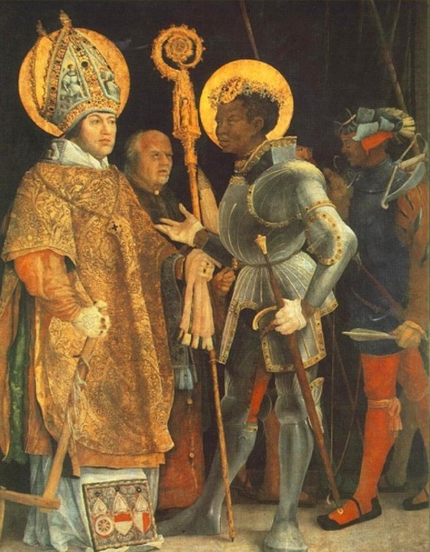 Saint Maurice, (allegedly died c. 286), was a christian soldier whose alleged martyrdom, with his comrades, inspired a cult still practiced today. Among those martyred with him were SS. Vitalis, Candidus, and Exuperius. He is the patron saint of the Vatican’s Swiss Guard.