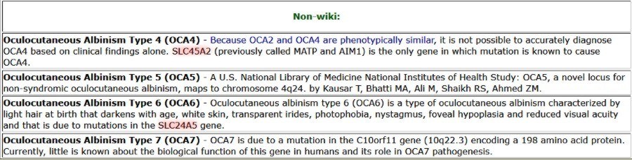 Albinism, oculocutaneous, 6 (OCA6): A disorder characterized by a reduction or complete loss of melanin in the skin, hair and eyes. Patients show reduced or lacking pigmentation often accompanied by eye symptoms such as photophobia, strabismus, moderate to severe visual impairment, and nystagmus.