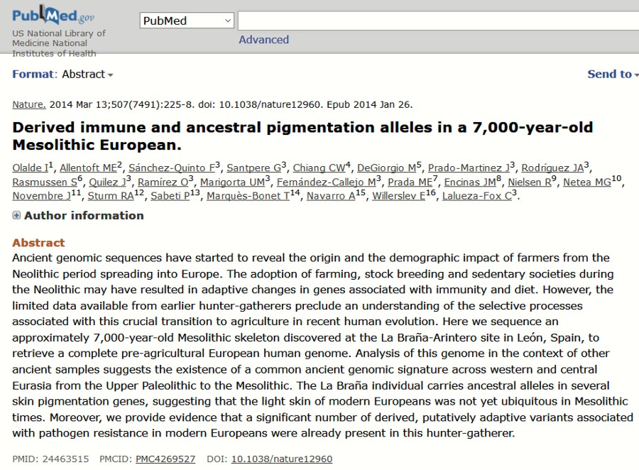 So the only thing the White scientists could do in their search for evidence of White people in ancient Europe, was to "BREAK DOWN AND ADMIT THAT THEY, AND THEIR KIND, WERE ALBINOS! That admission allowed them to look for the easy to detect Albinism/Skin color genes: SLC45A2 and SLC24A5 in ancient European skeletons.