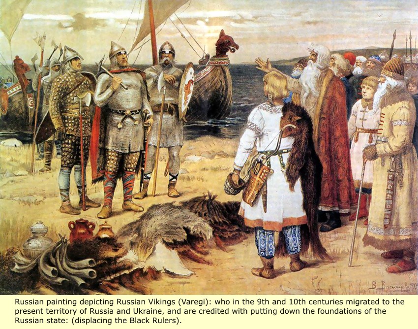 Note that in the Russian painting above: one of the Vikings is "Dark" as is the King they are visiting.
