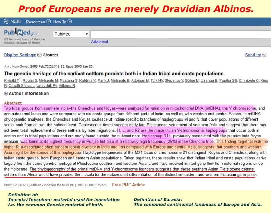 The Human Race is split-up into several sections: The original Black Humans and the Albinos of the original Black Humans. In the modern World, humanity is controlled by the Albinos of Dravidian Indian Blacks (Europeans) and the Albinos and Mulattoes of Northeast Asian Mongol Blacks (Chinese, Japanese, Koreans, etc. The Mongol Albinos expanded South into South Asia and the Pacific. The Dravidian Albinos migrated West into Europe, Anatolia (Turkey), North Africa (several times), Arabia: and finally 500 years ago, into the Americas. And in all of those places, modern Albinos have claimed to be the original people, and when those claims are deemed to be toooo ridiculous, their Mulattoes have taken up the bogus claim. This section is about their movements into North Africa: but first, here we present the scientific evidence to back-up what we say regarding North Africa.