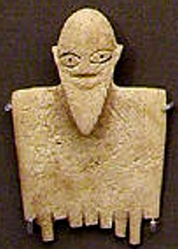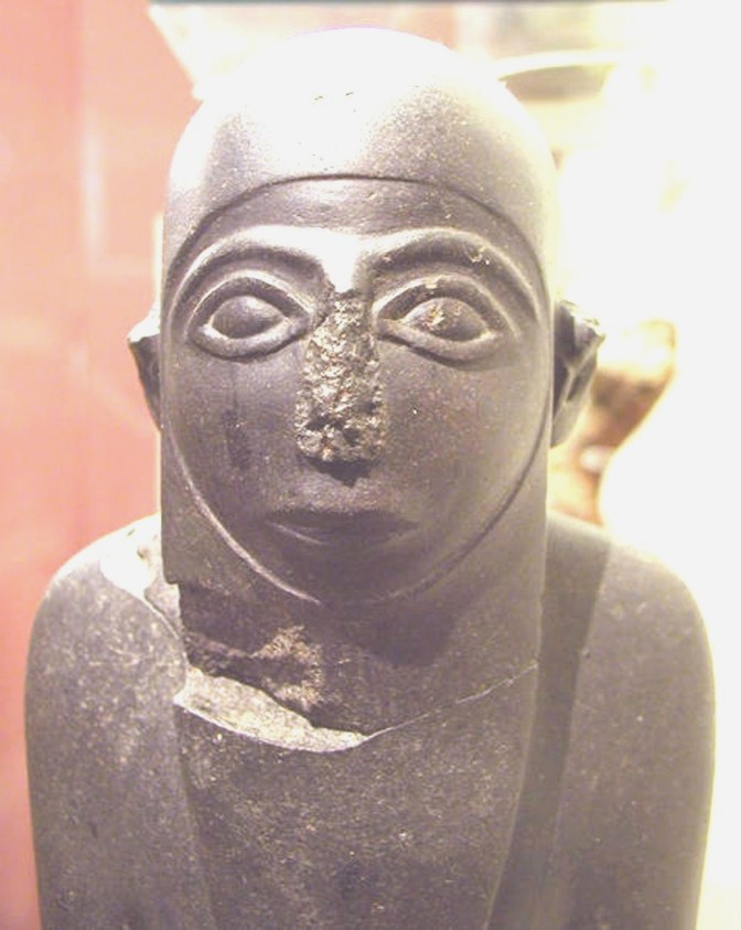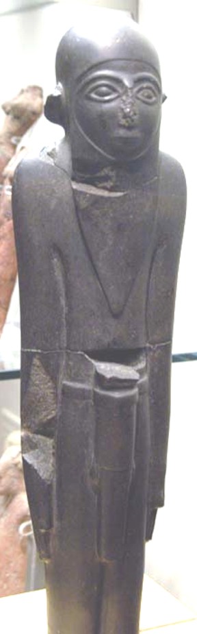 This polished black basalt figure of a male wearing a hood and penis sheath was once in the collection of the Rev William MacGregor, and is said to have been found in the region of Naqada. The authenticity of this sculpture has been questioned, (it does not appear to be Egyptian or ancient). In order to authenticate this statue, some have pointed to aspects of its dress and pose finding parallels in early art, such as the Hierakonpolis ivories and the Min colossi from Koptos.
