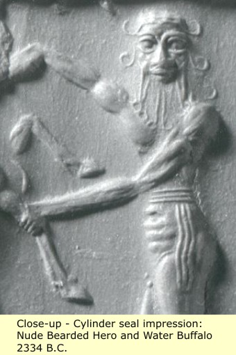 The king sailed to Unug towards the princely divine powers. Sumer and Akkad marvelled at him as he moored the boat at the quay of Kulaba. With a large wild bull of the mountains with uplifted horns, and with a sheep led by the hand of an en priest at his right side, with a dappled kid and a bearded kid clasped to his breast, he entered before Inana in the shrine of E-ana.