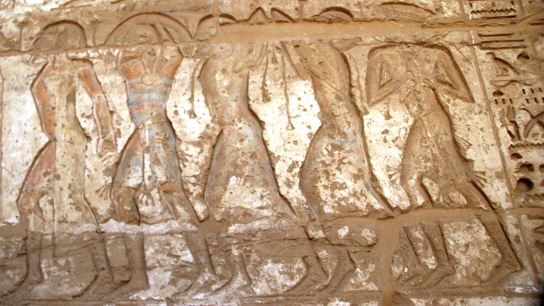 Ramesses III was a great king whose reign lasted more than thirty years. The ruins of two of his palaces have been discovered, the first on the Left Bank at Thebes, within the precincts of his great temple at Medinet Habu, and the second at Tell el-Yahudiya in the southern Delta, not far from present-day Cairo. The second was entirely destroyed in the 1880s, but its faience tiles were collected by local inhabitants and are today to be found in a number of museums. They include tiles with rosettes, bearing the name of the king, and with images of foreign captives. At that time, the range of metallic oxides used for the colored glaze of the tiles was extended, and gradually a comprehensive palette of colors was developed, with intermediate shades and pastel colors such as pink and pale gray being added to the primary colors available earlier.