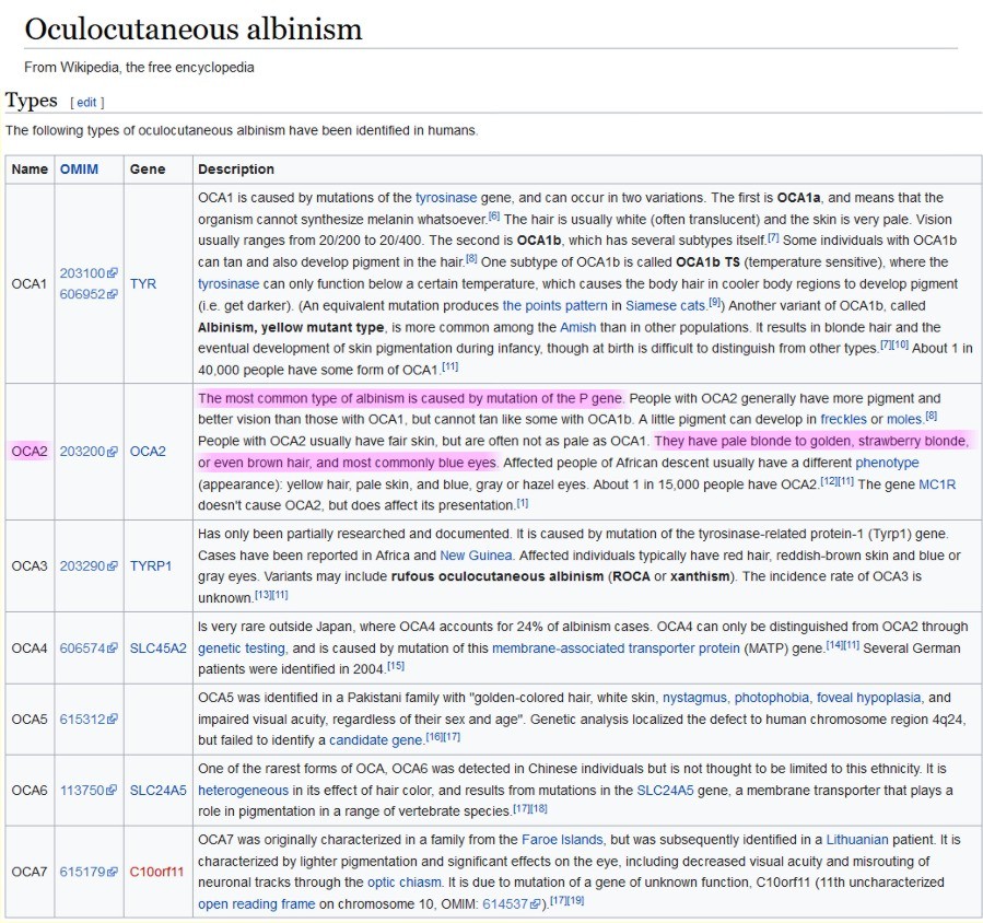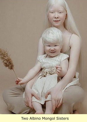 Please pay no attention to the Hair: Albinism is a "Recessive" trait disease and "Straight" Hair comes from a recessive "TCHH" gene. In some people: whether natural born Albinos, or admixed Mulattoes, Albinism straightens the hair in some: while in others, it does not. Here in our own culture, we have "High Yellers" with nappy hair and others with straight hair.