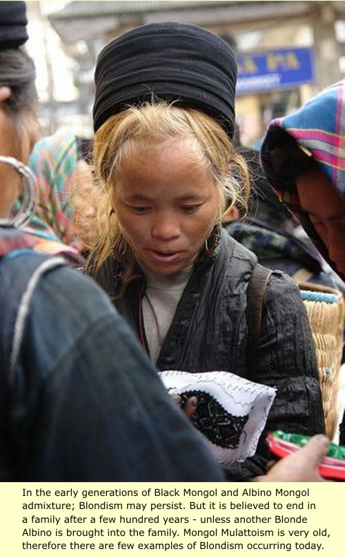 Truth: there are three types of Humans: Black skinned (the original humans), they are by far the largest segment = Assuming about 540,000,000 (0.54 billion) Mulattoes world-wide, that means the "Pure-Black" population of the world is about 4.65 Billion. The Mongol population of 1,637,452,415 people (China, Japan, Korea) is about 21% of the Human population. Now for the murderous lying Albinos.