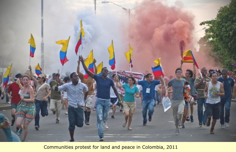 The Colombian conflict began on May 27, 1964 and is a low-intensity asymmetric war between the government of Colombia, far-right paramilitary groups, crime syndicates and far-left guerrilla groups such as the Revolutionary Armed Forces of Colombia (FARC), the National Liberation Army (ELN) and the Popular Liberation Army (EPL), fighting each other to increase their influence in Colombian territory. Some of the most important international contributors to the Colombian conflict include multinational corporations, the United States, and the drug trafficking industry.
