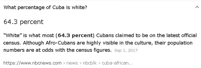 Meanwhile - The Cuban Florida results were perfectly normal and expected: Florida Cubans have been in the pockets of Republicans since Castro took power, and (White) Cubans packed their money into suitcases and fled to the U.S. It all makes political sense, except that it doesn't! Why would a Black or Mulatto Cuban working in a restaurant, or driving a Cab, or cleaning someone's lawn, care about Socialism, or LGBTQ people getting their rights? or anything like that? It seems that U.S. Cubans should welcome close relations with Cuba, just so their fellow Countryman in Cuba could get FOOD and MEDICINE!